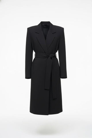 The After Hours Coat is tailored from a luxurious wool blend, offering warmth without weight. Designed with a self-tie belt to define the waist, structured shoulders, and clean lines, it’s equal parts classic and contemporary.