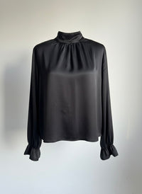 The Dark Desire Blouse is where softness meets allure. Cut in fluid black satin silk, it drapes effortlessly over the body, catching the light with every movement.